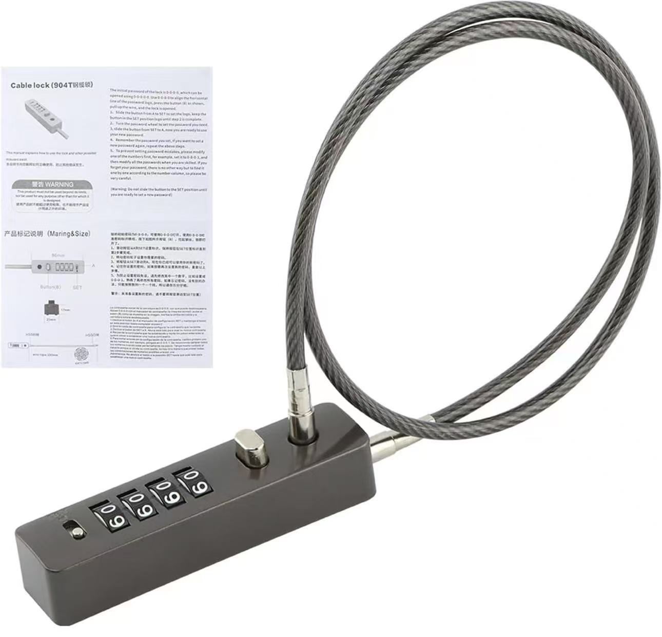 Black Cable Lock with Combination, Resettable Combo Code, Anti-Theft Cable Locks for Bike, Locker, Cabinet, Fence, Gate, Pet Door