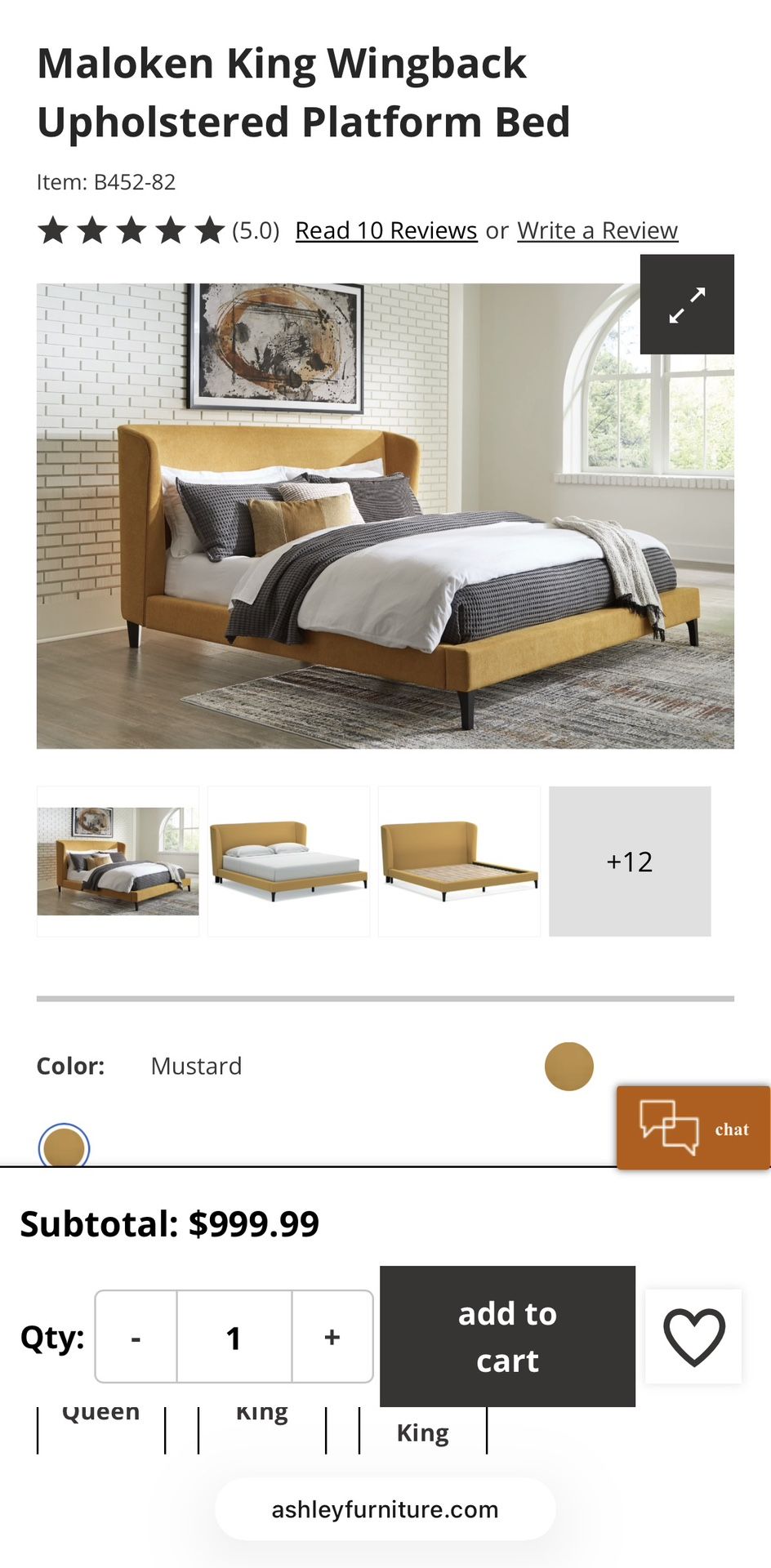 Upholstered bed in a mustard color. Less than 1 year old. Taken apart and ready for pick up!