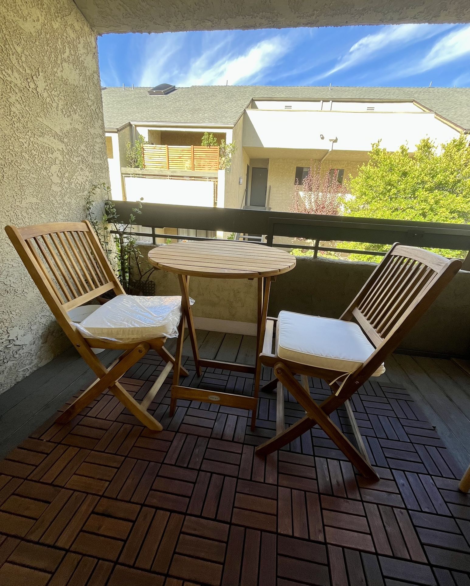 Two chairs and a table set. Acacia wood Never used Moving sale