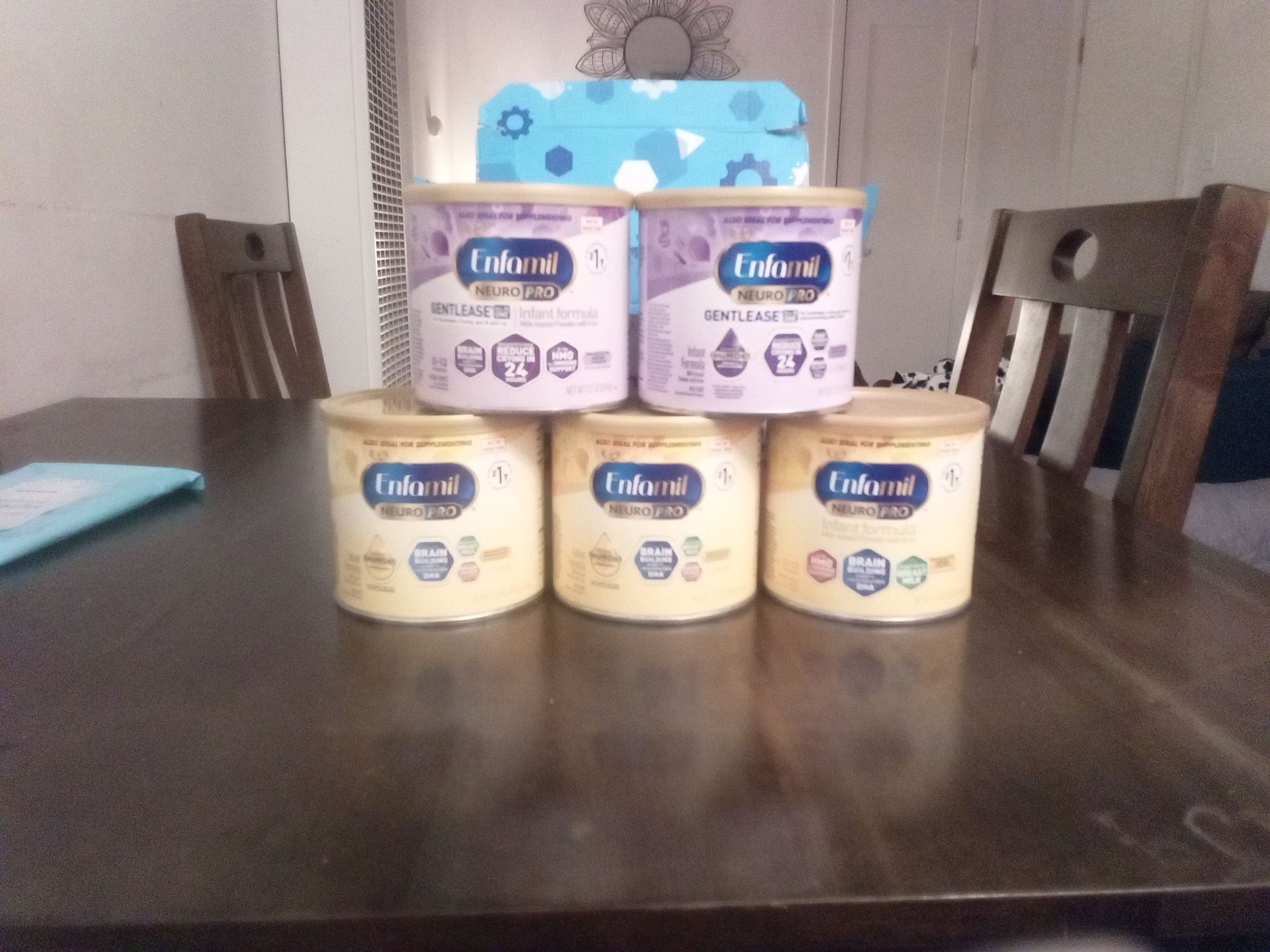 3 Enfamil- NEURO PRO 7.2OZ CANS & 2 Enfamil- GENTLEASE ALL IN ONE 7.2OZ CANS