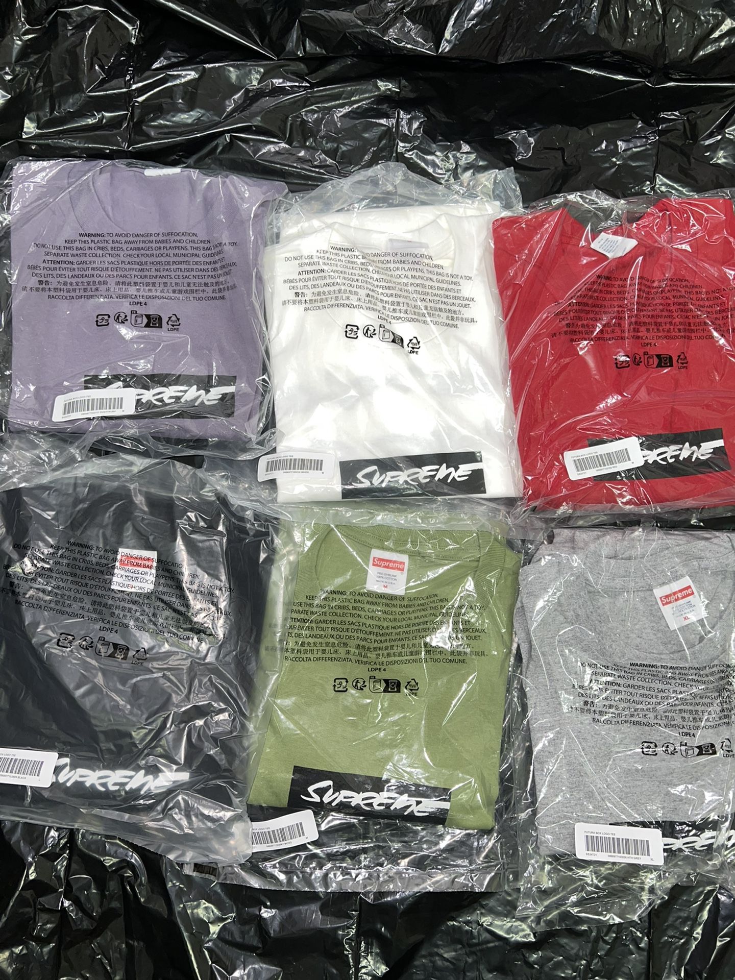 Supreme Futura Box Logo Tee Shirt ds brand new black white purple green grey red shoulder waist bag backpack beanie hat jacket sweatshirt hoodie sb