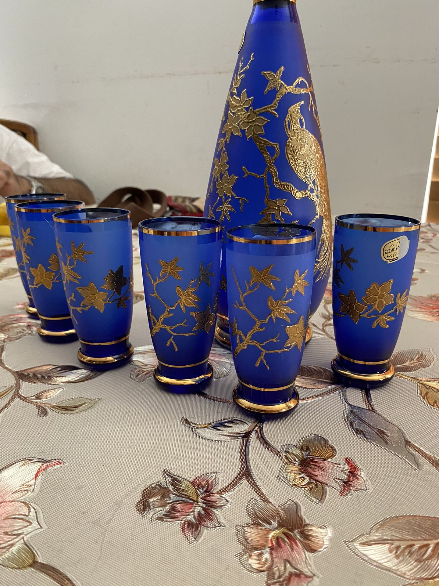 It’s very good condition blue crystal fro Bohemia Czech rep 24 k gold ply Ted and hand painted it’s vintage it’s a bird and flowers on it pleas text for more info