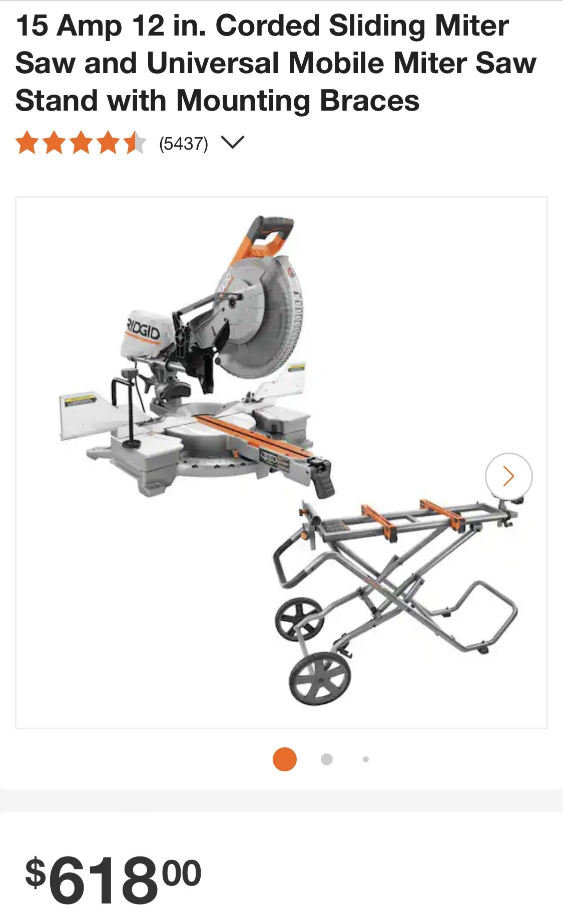 Heavy-duty, 15 Amp 12 in. Corded Sliding Miter Saw and Universal Mobile Miter Saw Stand with Mounting Braces