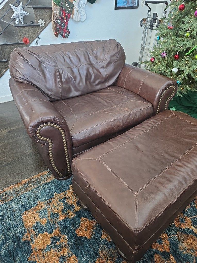 Muched loved oversized leather chair with ottoman