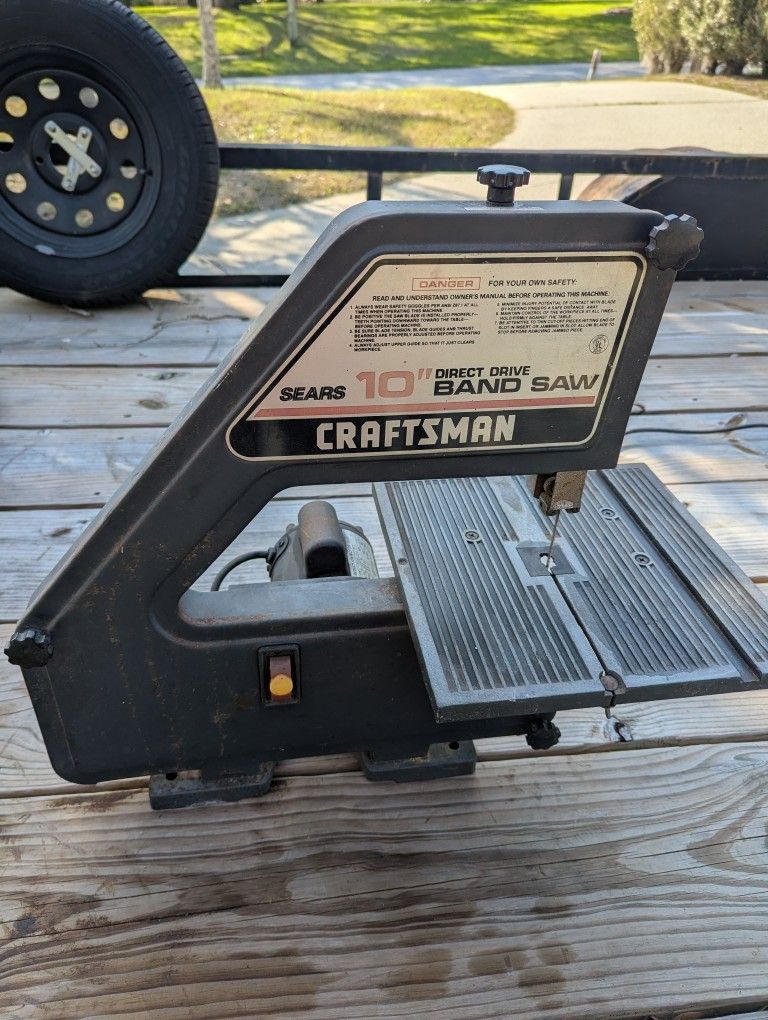 The Craftsman 10'' Direct Drive Band Saw Model 113.244512 is a powerful and reliable tool designed for cutting wood with precision. With a 10-inch blade diameter and a 45° cutting angle, this corded electric band saw is perfect for various woodworking projects. The direct drive design ensures smooth and efficient cutting, while the sturdy construction and brand reputation of Craftsman make it a dependable choice for any home workshop or professional setting. Whether you are a beginner DIY enthusiast or a seasoned woodworker, this band saw is a versatile and essential addition to your tool collection. Removable Kill Switch prevents unapproved use. Makes great derby cars😉
