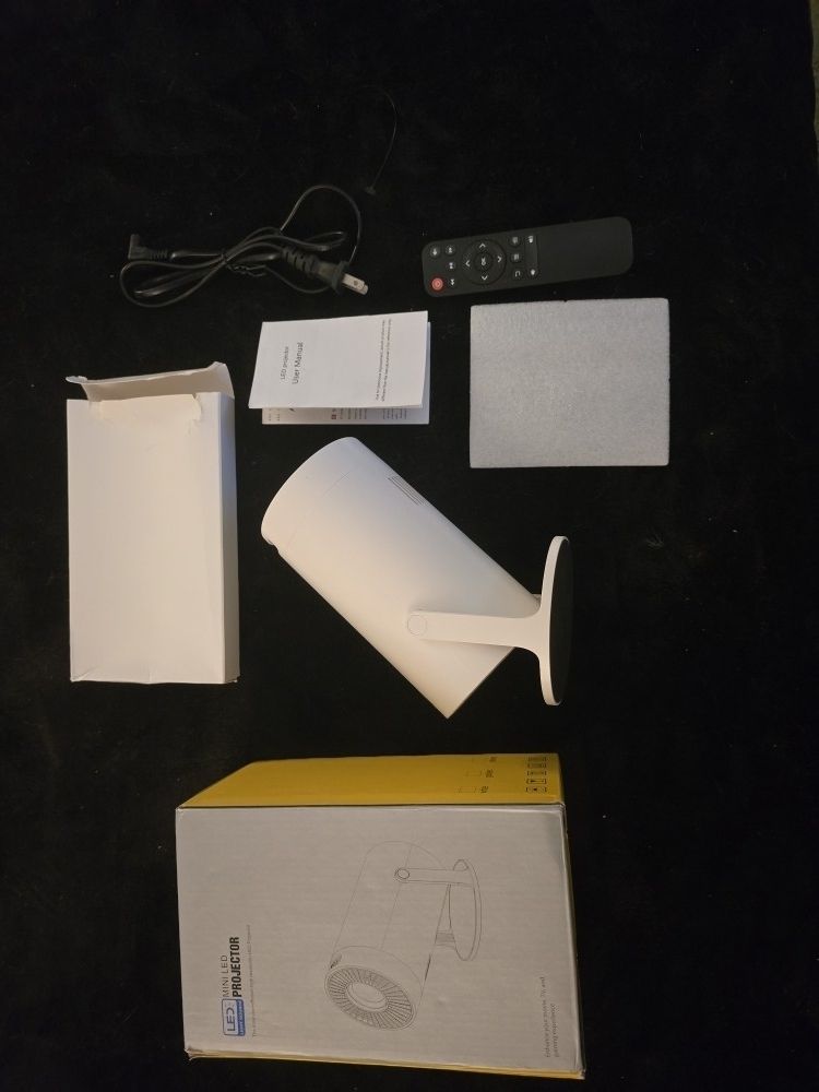 (Paid $99 ea.)Brand new in box with remote ...up to 200 inch (over 10ft) picture- any angle- anywhere....bought 4 projectors to watch a game on each wall of a room decided to split Screen on 1 ...had 3 for sale..1 remaining Great picture even if u just project on to wall or ceiling...connects to wifi and bluetooth and any app or streaming also has wires and ports for anything u want to watch or game play...
