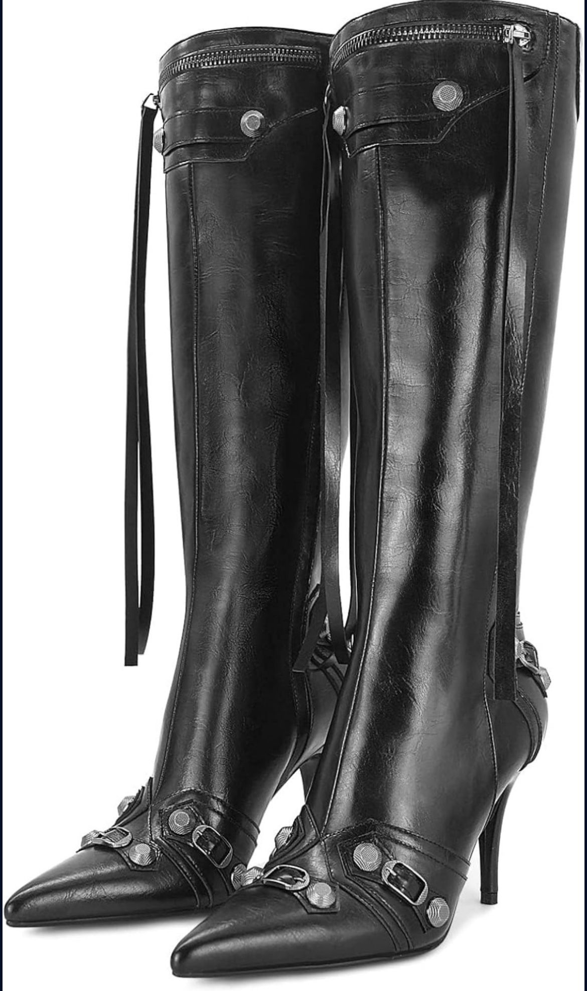 New Women’s Size 8 Dsevht Women's Stiletto Black Knee High Boots Sexy Pointed Toe Boot Fashion Trendy High Heel Boots Zipper