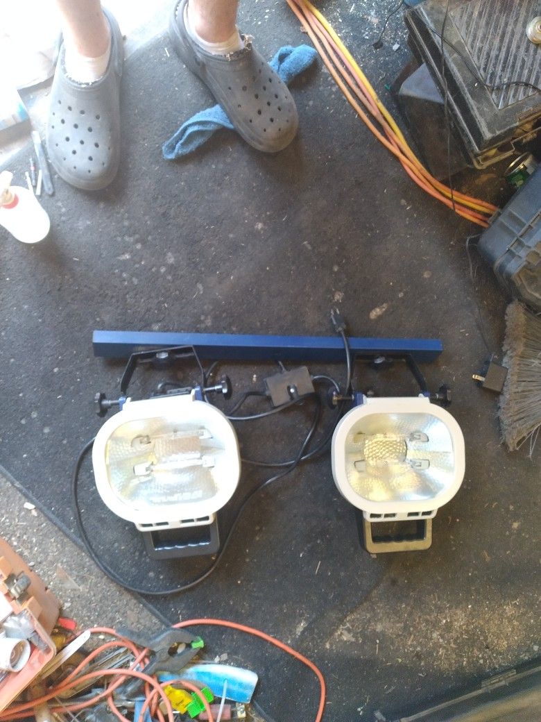 Cooper light Corp. Halogen work light. 4 bulbs total. Type t-3 lamp. 300 watt max. Very bright. Model DTS 1200. Comes with extra bulb