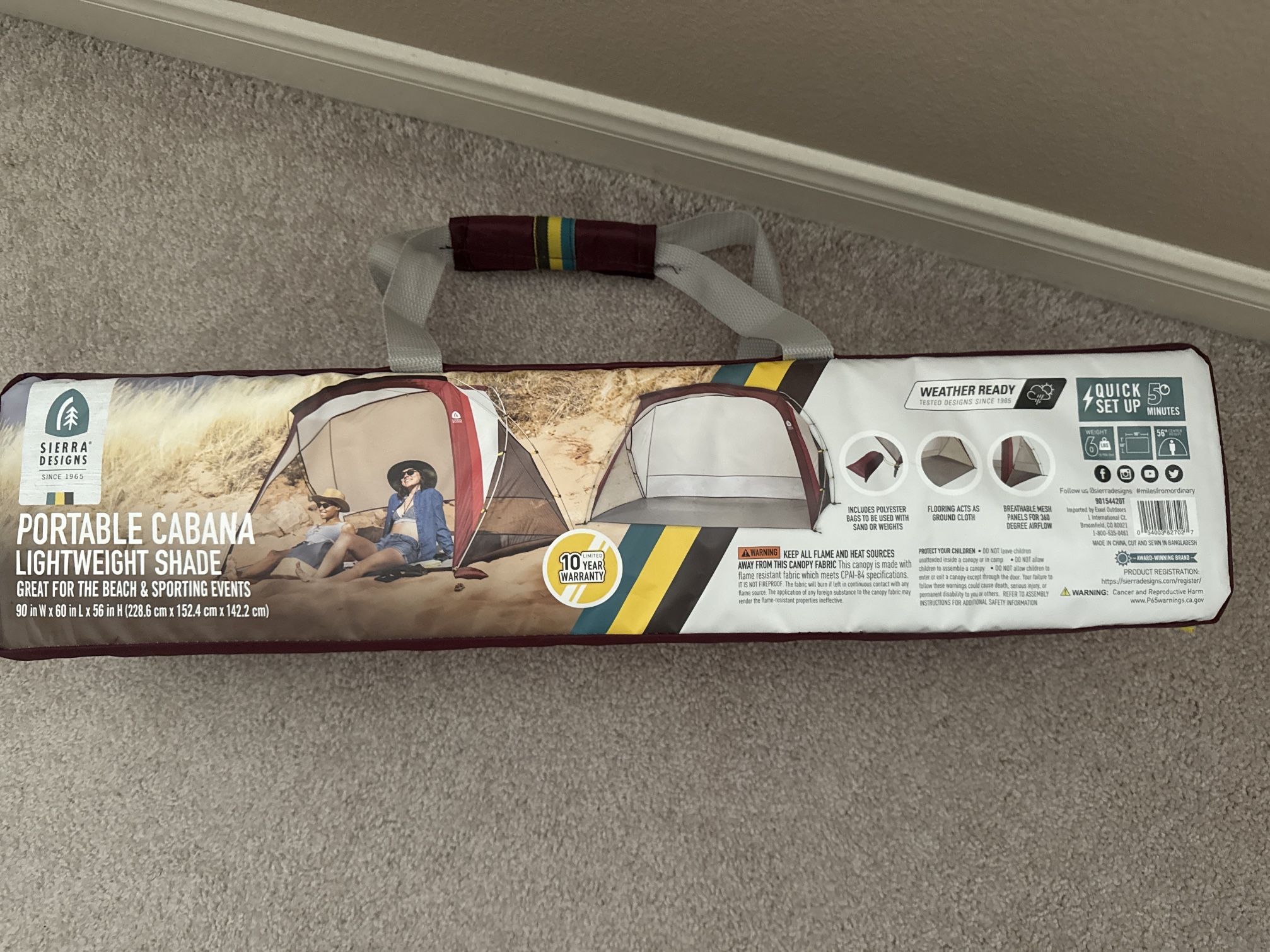 Brand new never opened portable cabana lightweight shade. Great for the beach or sporting event. Asking $30 or OBO 90 in W x 60 in L x 56 in H (228.6 cm x 152.4 cm x 142.2 cm)