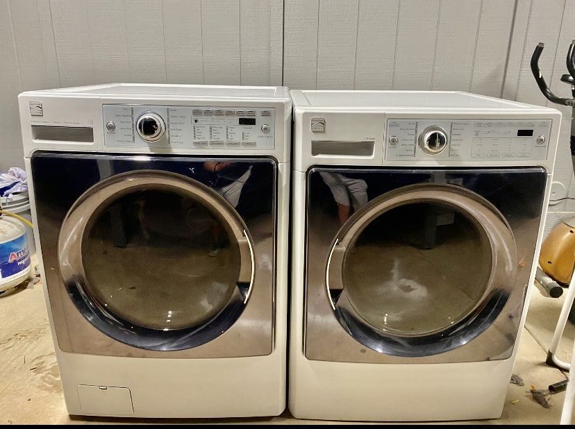 Kenmore Washer and electric dryer. Stackable or side by side. Excellent working conditions. I can accommodate delivery within the area. Steam features. Bulky/bedding capacity. W 27” H 38” D 30”