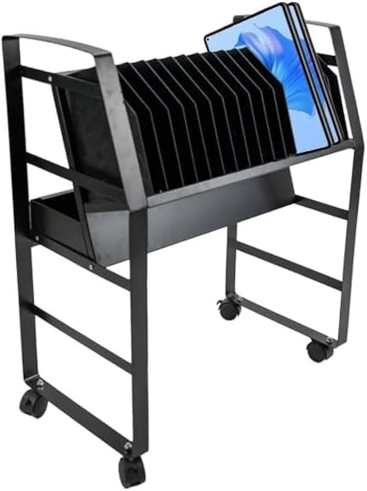 Yeeoy Line Leader Charging Cart, Open Mobile Charging Station with Wheels for 16 Tablets, Chromebooks & Laptops, Compact Tablet Storage Rack Charging