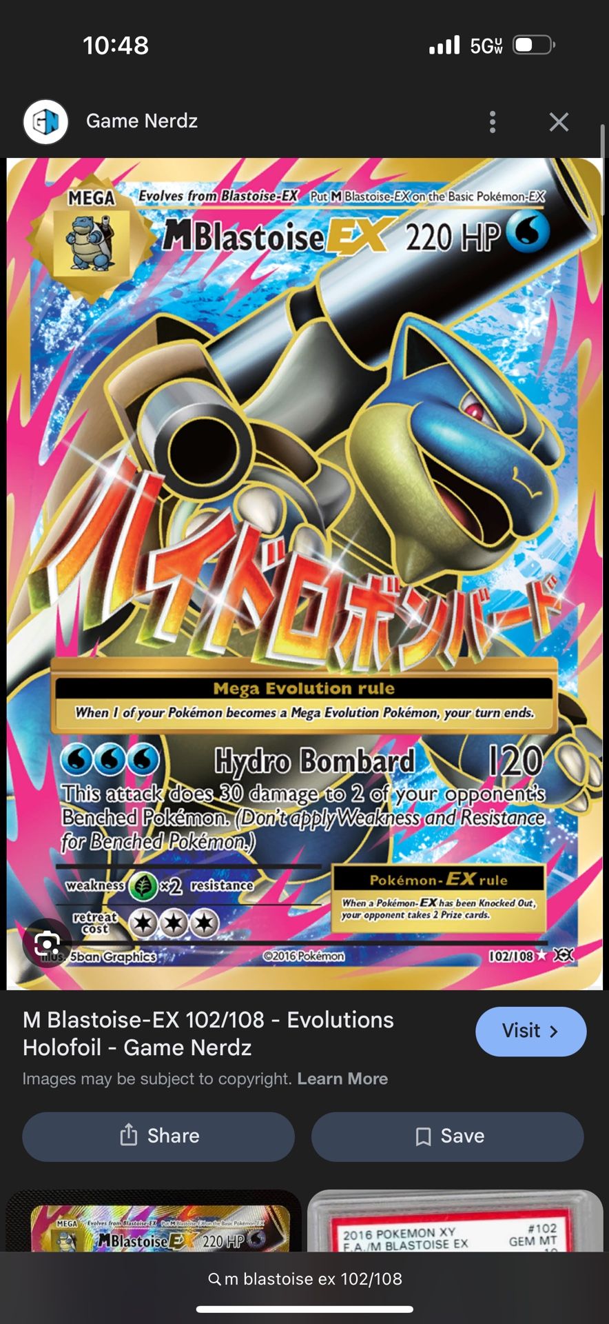 Mega Blastoise Ex 102/108 (xy Evolution) NM/MINT