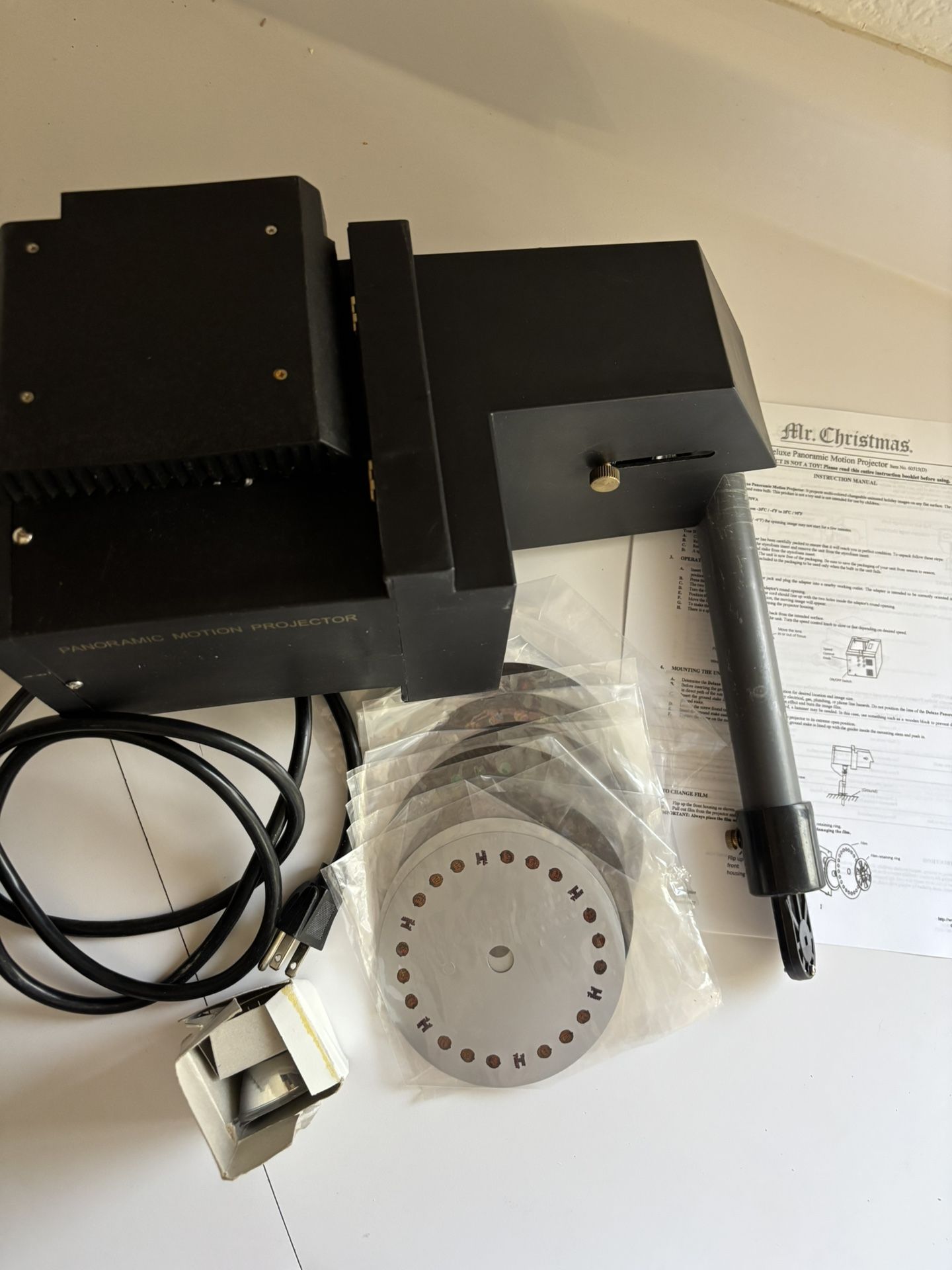 Outdoor light projector for the front of your house. It has 13 different season/ occasions disks included not just Christmas. Includes a stake to put into the ground. Everything works great still. A extra light is included and I printed out new instructions for it.