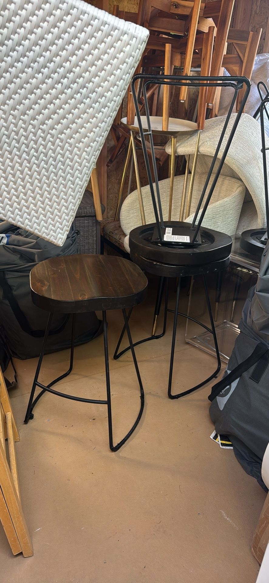A set of 4 wooden top stools with metal legs! 2 feet tall and 1.5 foot diameter seat.