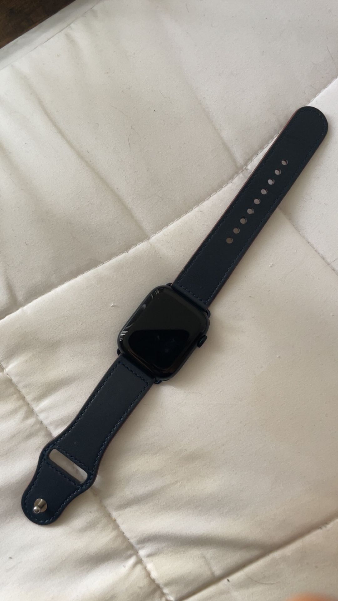 Apple Watch Series 8 Black Navy Blue Leather Strap