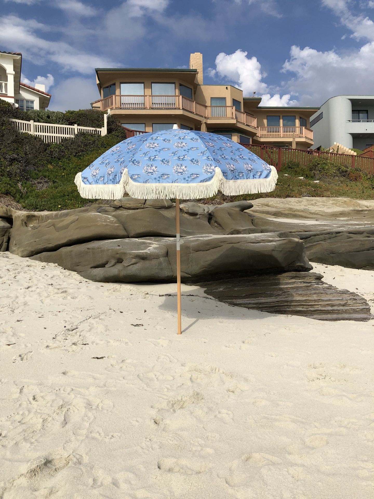 Tassel Fringe Tropical Blue Beach Umbrella Sample Sale