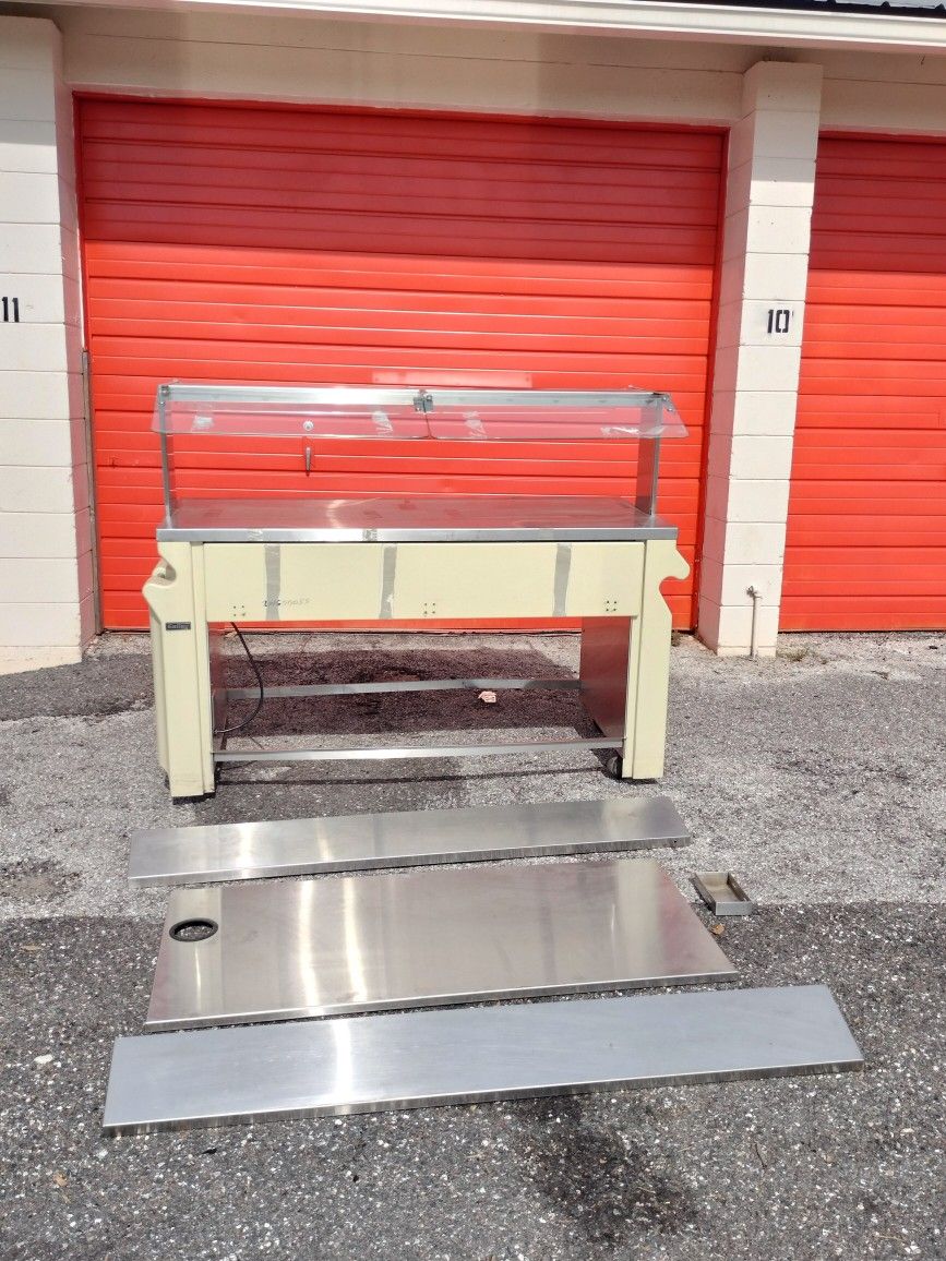 - Galley Serving Counter Food Buffet for Restaurant or Other - Reinforced utility food counter - This is a very high quality piece - Regular 120 volts for the lights - It's in great cosmetic condition but could use some cleaning to remove old tape markings (all over the unit) - It has 2 serving rails that were disconnected for transport - The glass pivots up or down - Model 9340W/5040-05 - New MSRP over $5,500.00 - Delivery is available - First come first served - Only $1,850.00 or best offer