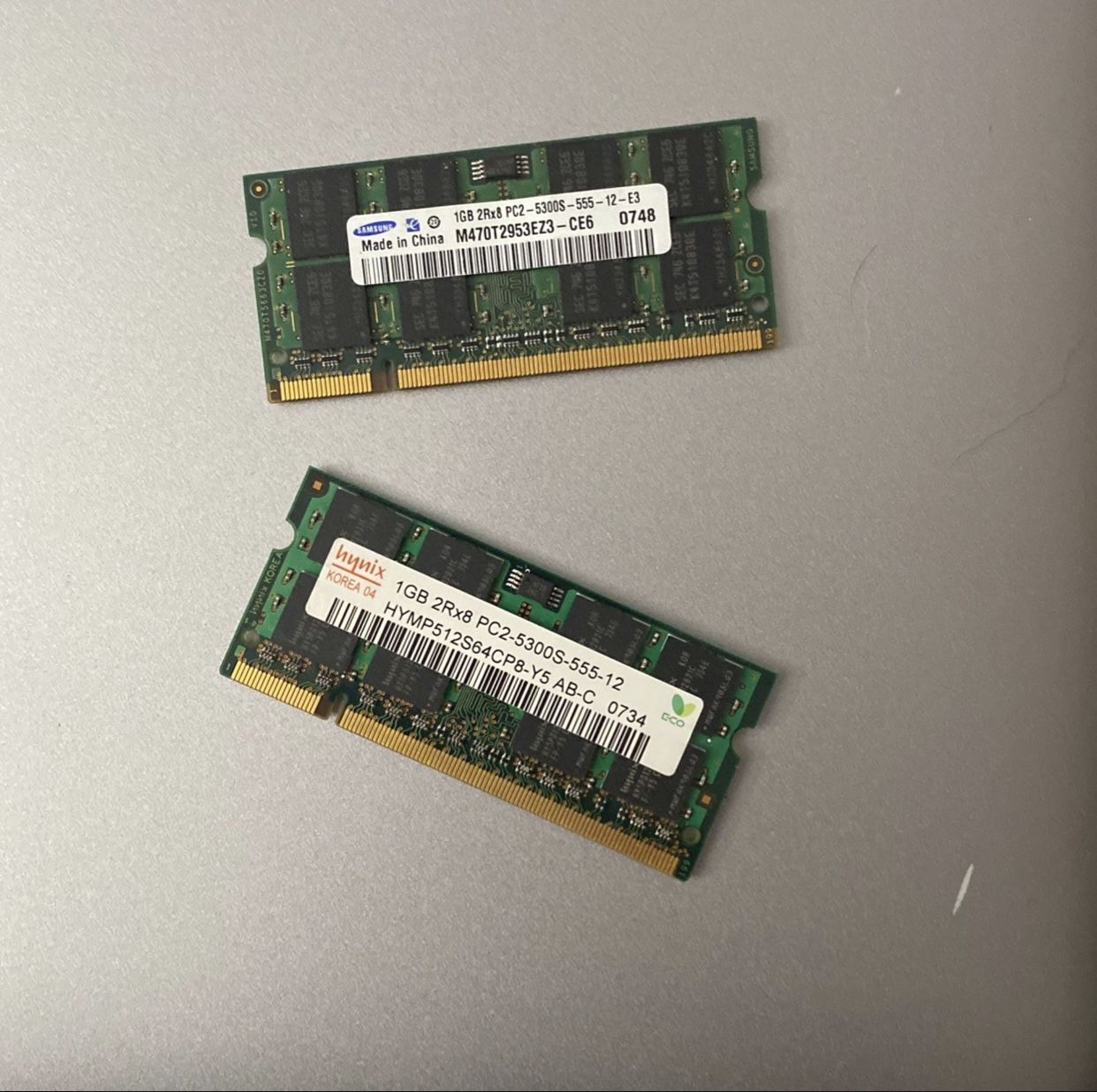 2 GB laptop ram DDR2 1- 1GB Samsung 2- 1GB Hynix