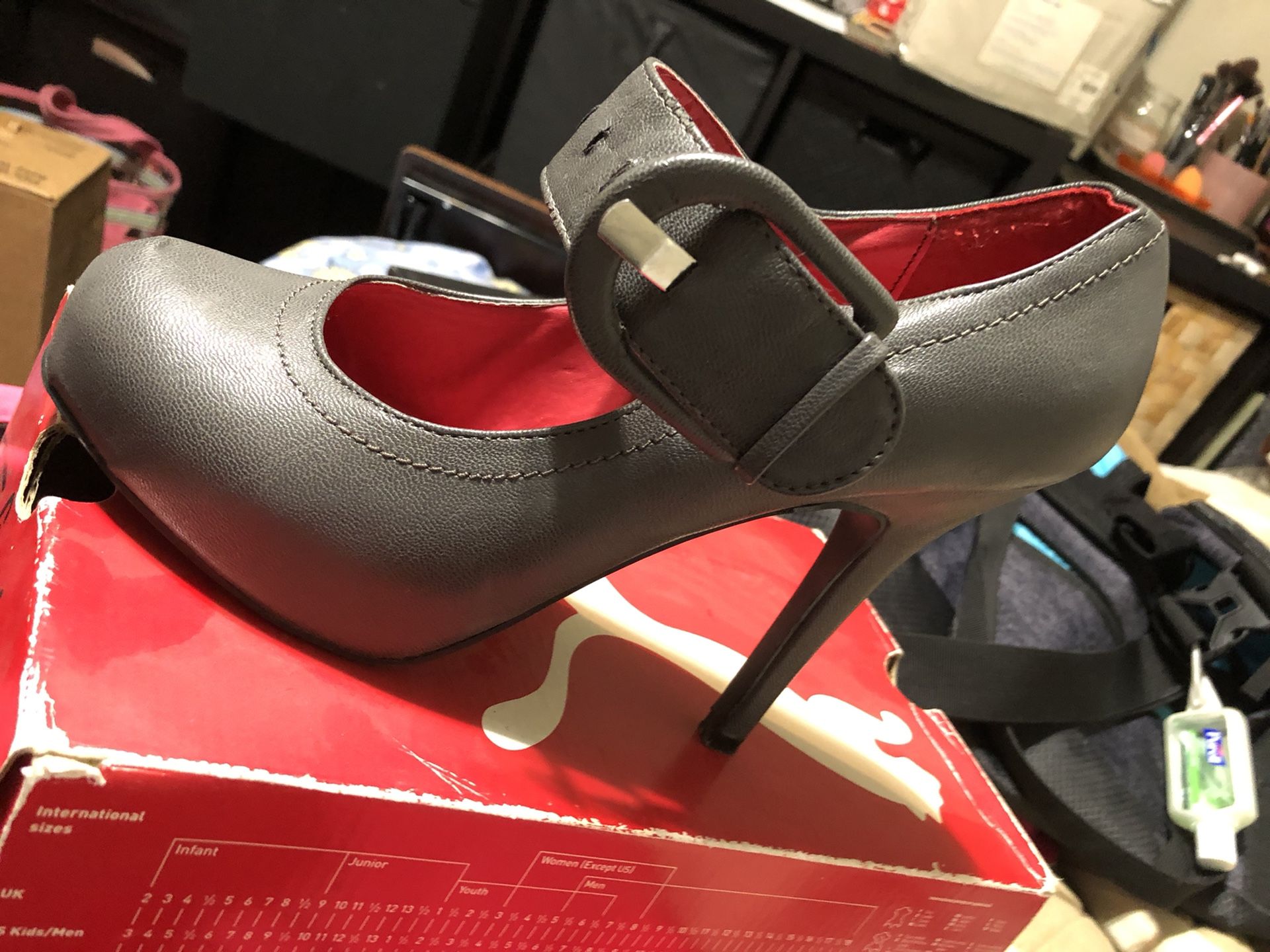 Gray 8 1/2 heels. I’m an 81/2- 9 and these fit perfect! They are in great condition but I can’t wear heels anymore. $10 obo