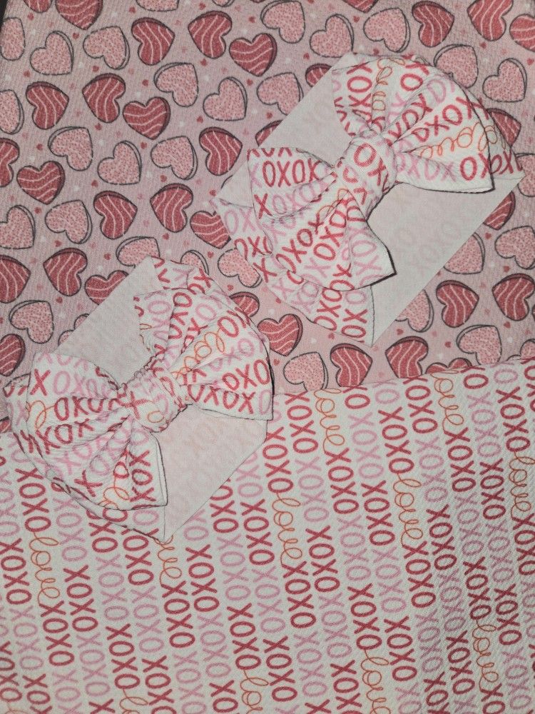 Available Sizes Newborn12" 0-6 mths 13" 6-12 mths 15" 12-24 mths 17" 2T - 5T 19" Two prints available to choose from $8 each Free delivery around The Woodlands/Spring area. OR pickup available outside this local area. $5 USPS shipping elsewhere by Tuesday for chance to receive by Saturday (delivery not guaranteed by V-Day)