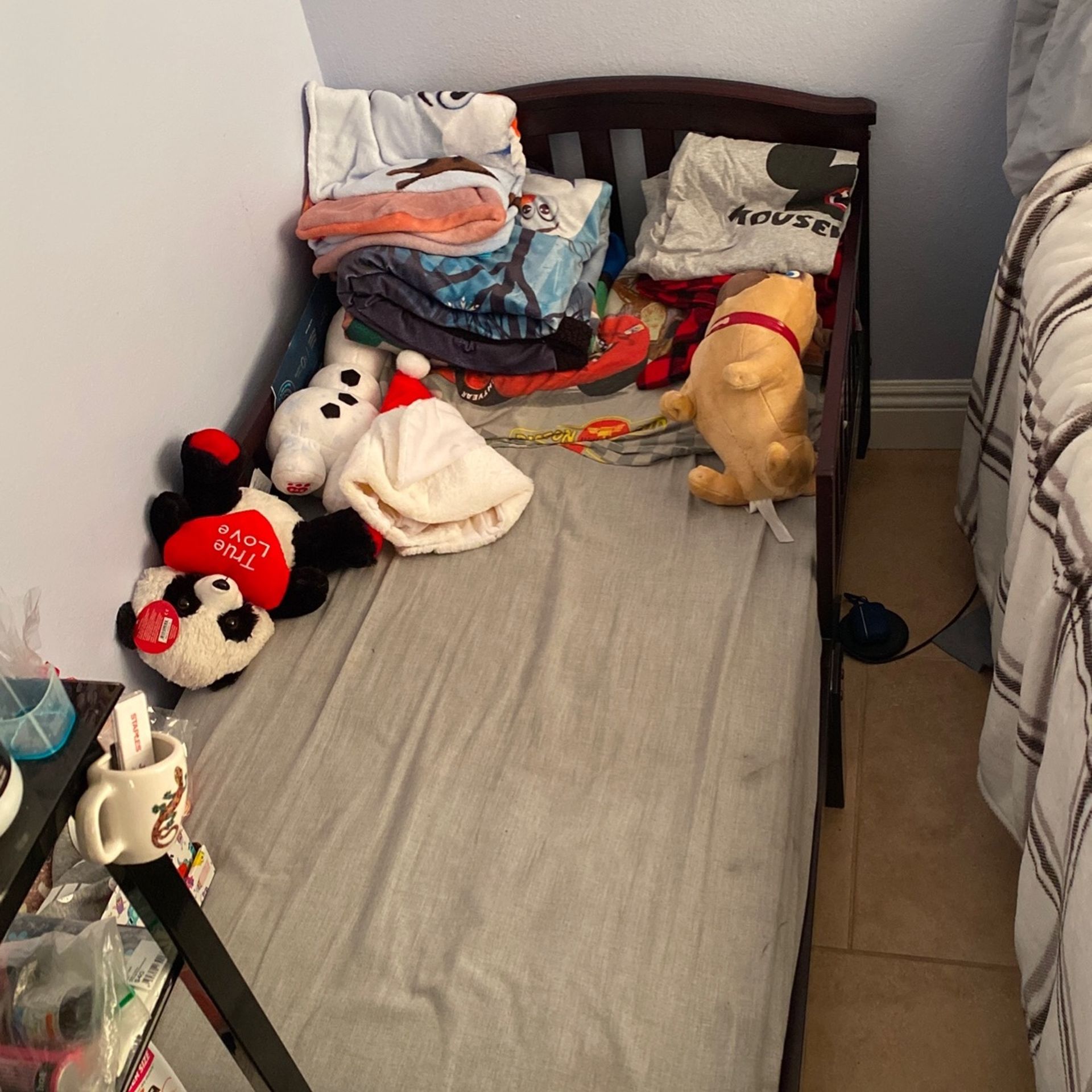 Brown small bed. My son grew out of it. Mattress is an option