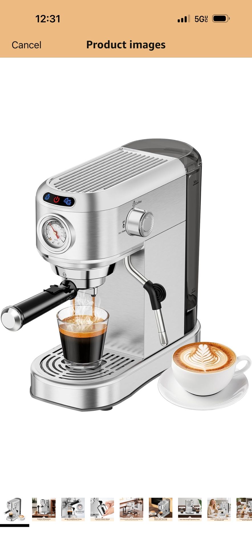Espresso Machine 20 Bar, Compact Espresso Maker, Stainless Steel Professional Expresso Coffee Machines with Steam Milk Frother & 34oz Removable Water