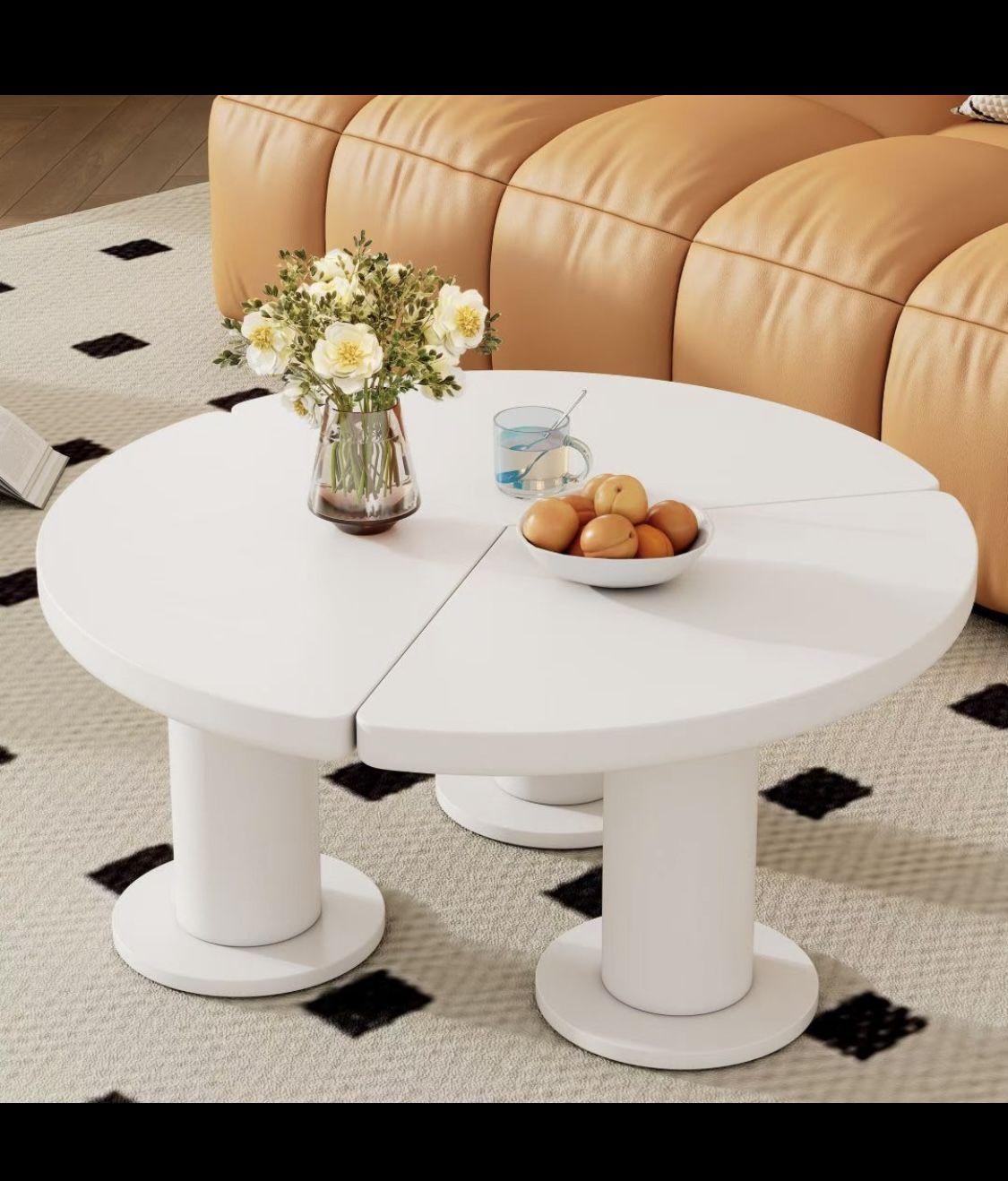 Round Petal-Shaped Coffee Table, Cream Style Center Table with 3 Thick Legs, Minimalist Irregular End Table
