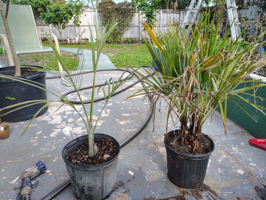 two nice palm trees. buccaneer palm and thatch palm. fertilized and ready to plant. price is for both trees together as a bundle