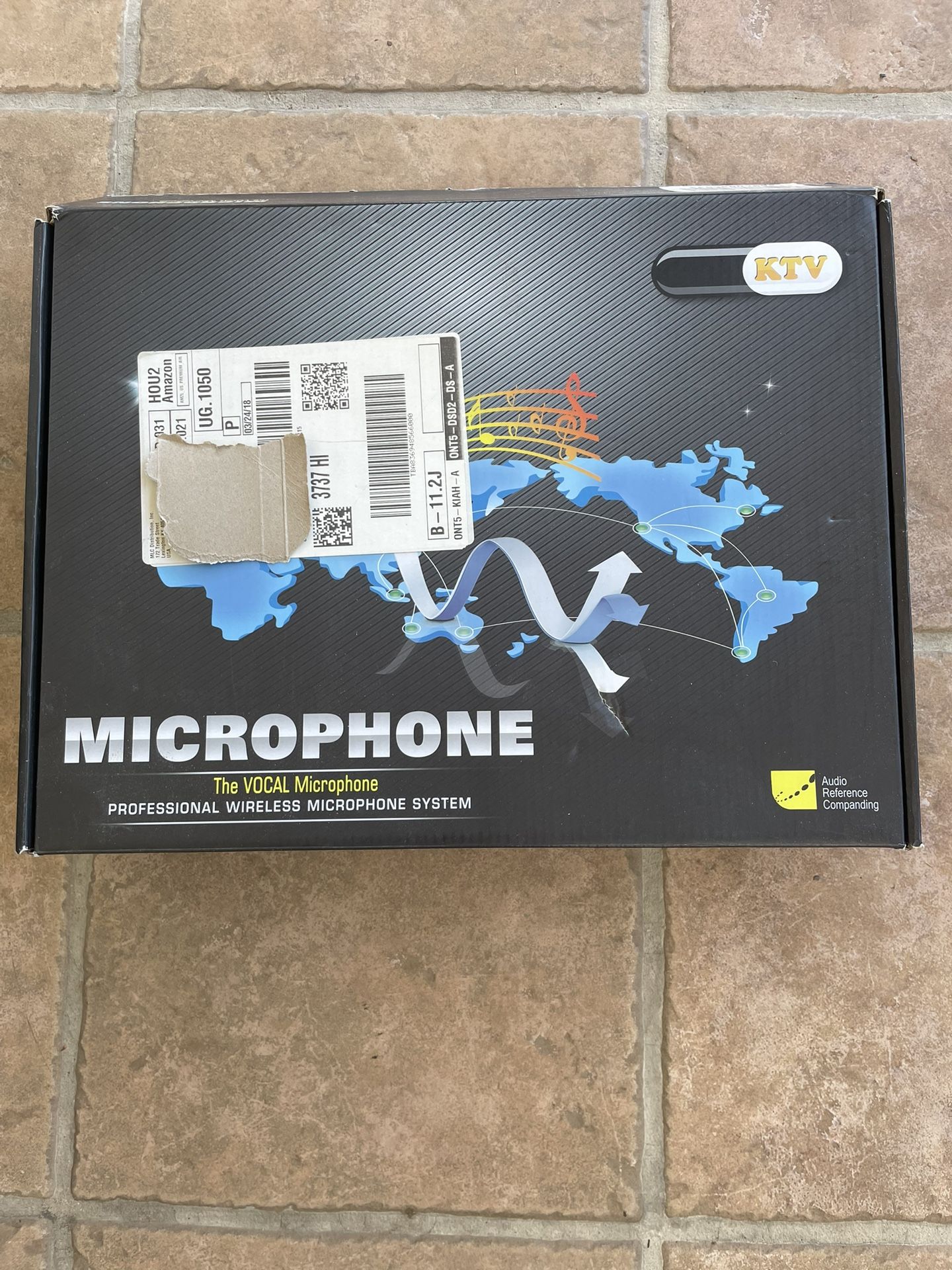 Asani Y-A91 is a dual channel UHF wireless system great for karaoke, speaking, events, recording. Good, clear audio quality. includes two wireless handheld microphones (each uses two regular AA size batteries), a receiver with 3.5mm jacks, a lavalier clip on mic, AC adapter. Like new.
