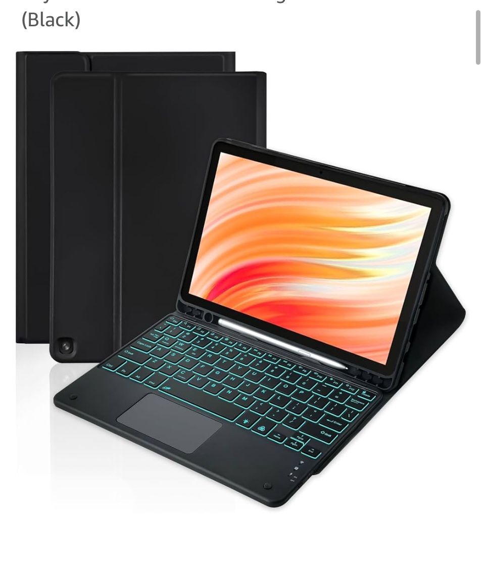 Trackpad Keyboard Case for Amazon Fire HD 10/10 Plus 10.1 inch 2021/2023(11/13th Generation),7-Color Backlight Rechargeable Keyboard with Kids Multi-A