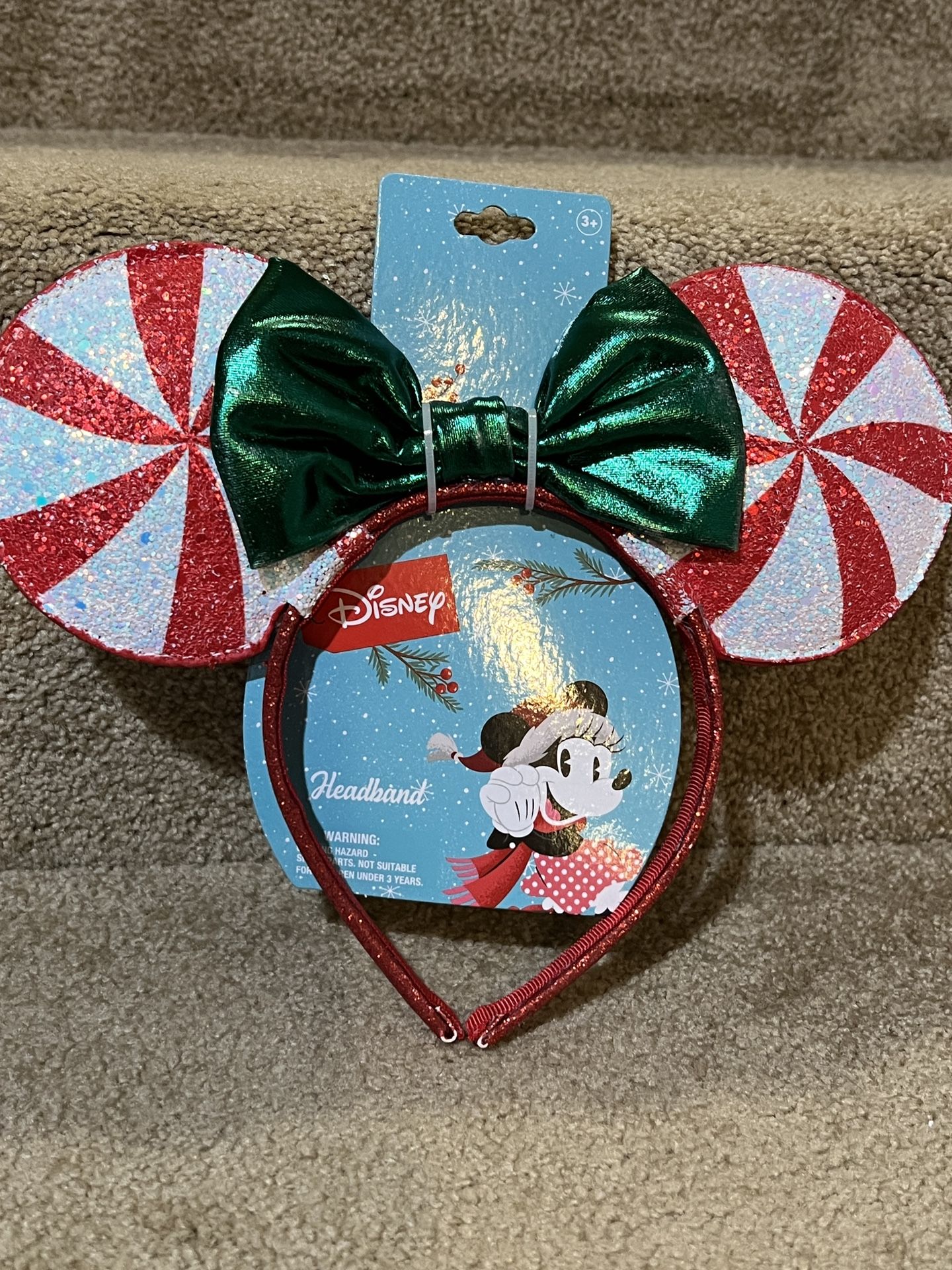 Disney Red Green Peppermint Candy Minnie Ears Headband