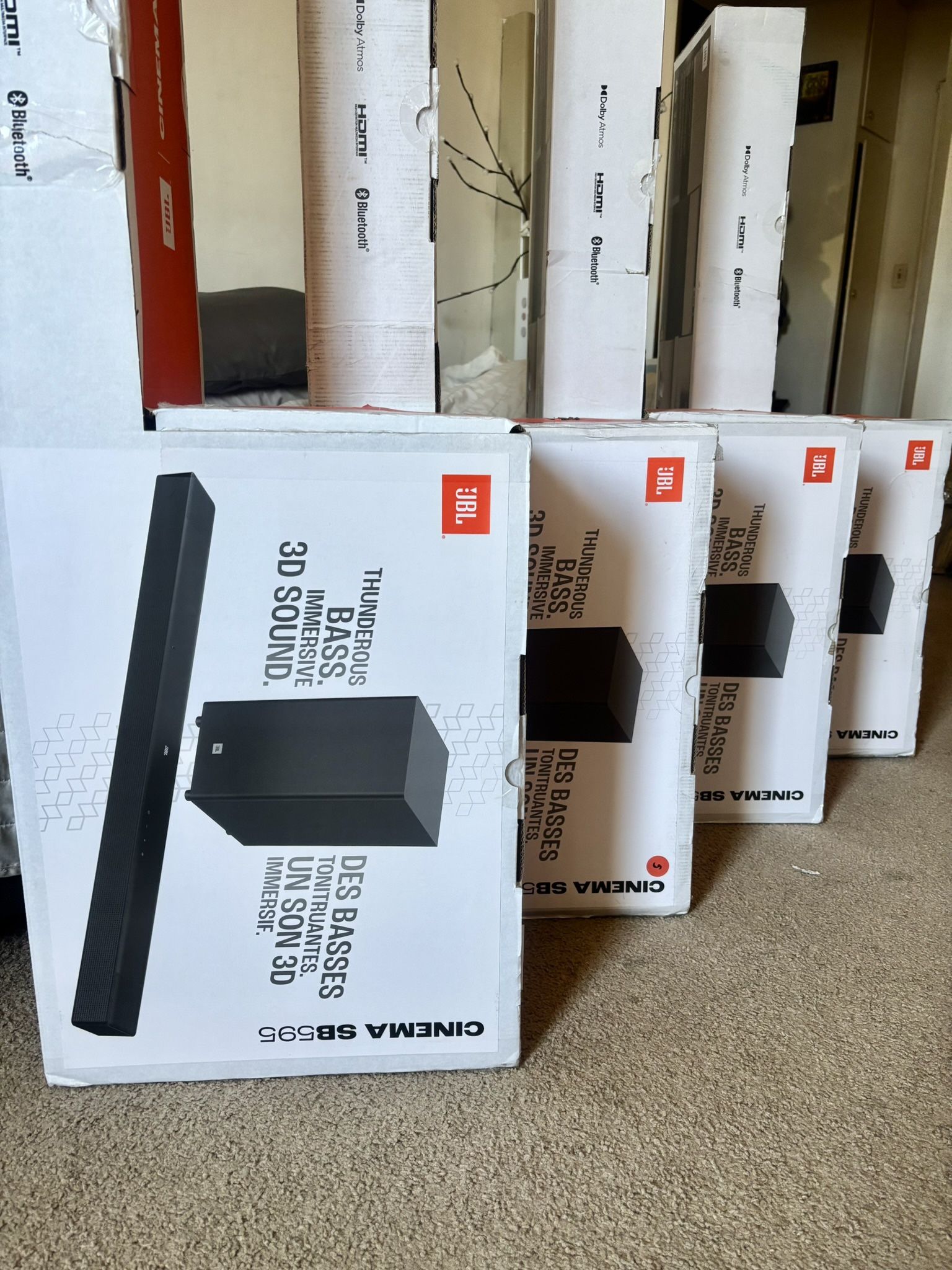 Comes New, Open Box. Available for pick up. Message for any questions. We speak Spanish as well. ๐ FOLLOW MY PAGE FOR MORE ELECTRONICS ๐ โธป ๐ FEATURES & SPECS ๐ ๐ True 3.1.2 Channel Surround Sound โ Immersive home theater experience with powerful, room-filling audio ๐ Dolby Atmosยฎ Support โ Enhanced height effects for cinematic sound from movies, sports, and gaming ๐ High Output Power (Up to 440W Total System Power) โ Loud, clean, and dynamic audio performance ๐ Wireless Subwoofer Included โ Deep, punchy bass without extra cables ๐ Dedicated Center Channel โ Clear dialogue and vocal clarity for TV shows and movies ๐ HDMI eARC / ARC Connection โ One-cable TV connection with high-quality audio passthrough ๐ Bluetooth Streaming Built-In โ Stream music wirelessly from phone, tablet, or laptop ๐ Multiple Sound Modes โ Movie, Music, and News modes optimized for different content ๐ Sleek JBL Design โ Modern, low-profile soundbar that fits perfectly under most TVs ๐ TV Remote Compatible โ Control volume easily using your existing TV remote โธป Dimensions (Approx.)โ ๐ Soundbar: 40โ W x 2.4โ H x 4.2โ D ๐ Subwoofer: 9.5โ W x 17.3โ H x 9.5โ D