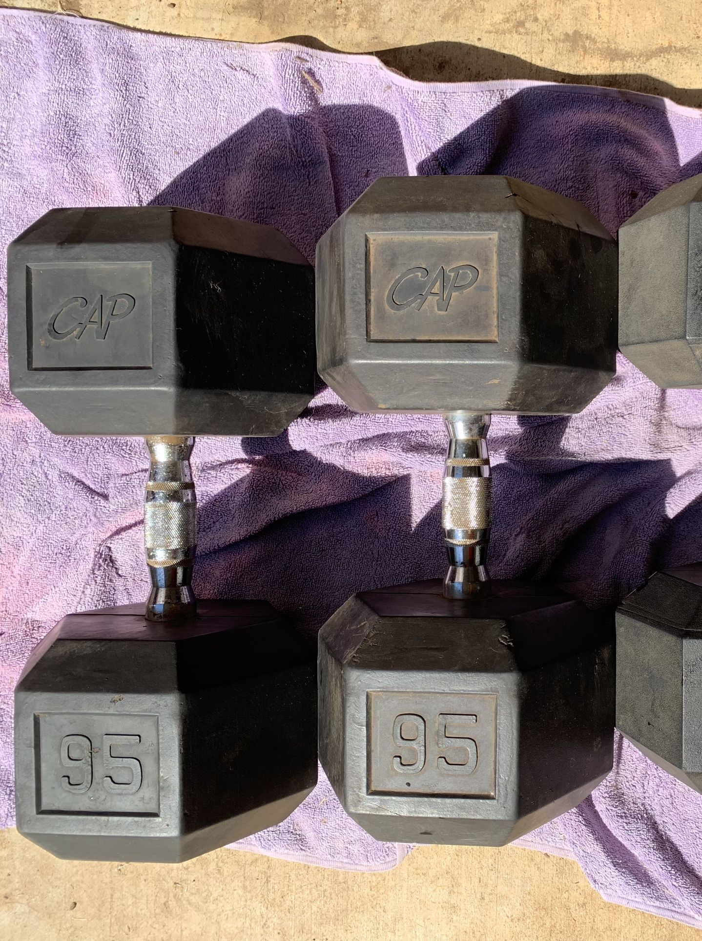 I have a pair of 95 pound CAP rubber hex dumbbell weight that I no longer use. They are in great condition. $350 obo