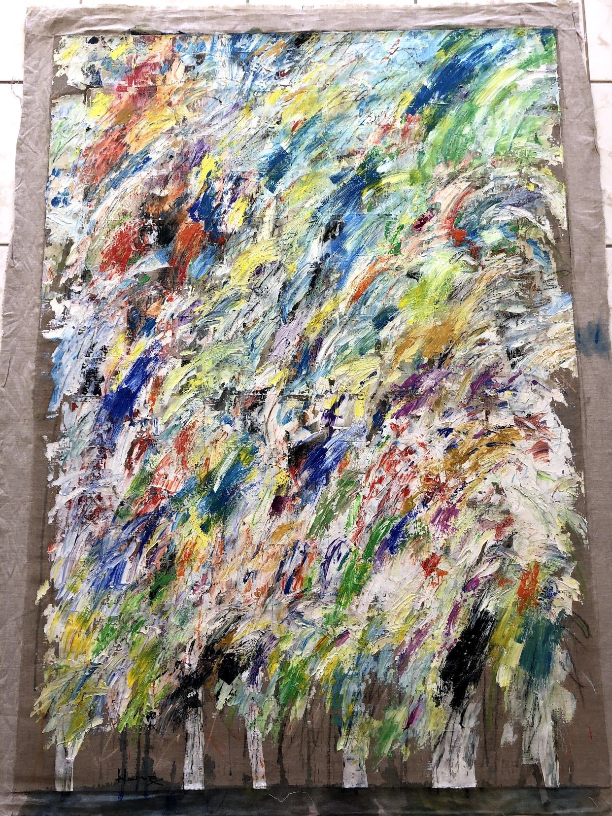 Oil Painting On Canvas by C. WONG 39 inches X 55 inches