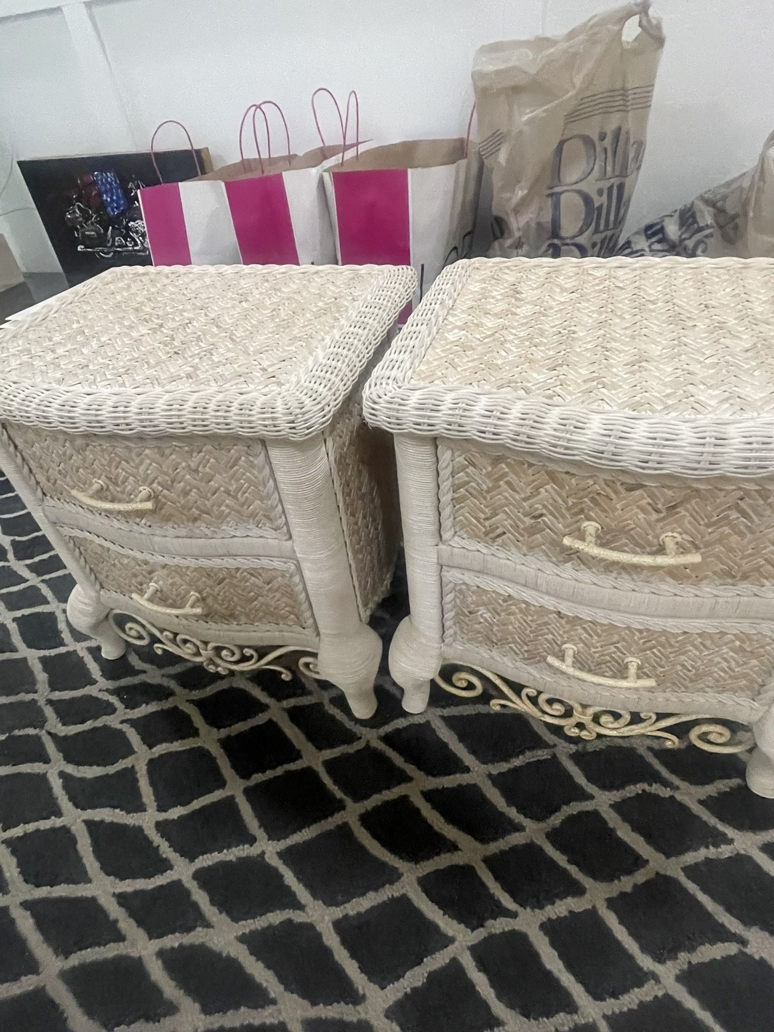 Dresser-$150 Perfect condition with glass top 2 nightstands- $150 for both Buy all pieces for $250 Must go Easy transport in pickup Plantation pick up #vintage #coastal #bedroomset #rattan #girlsbedroom