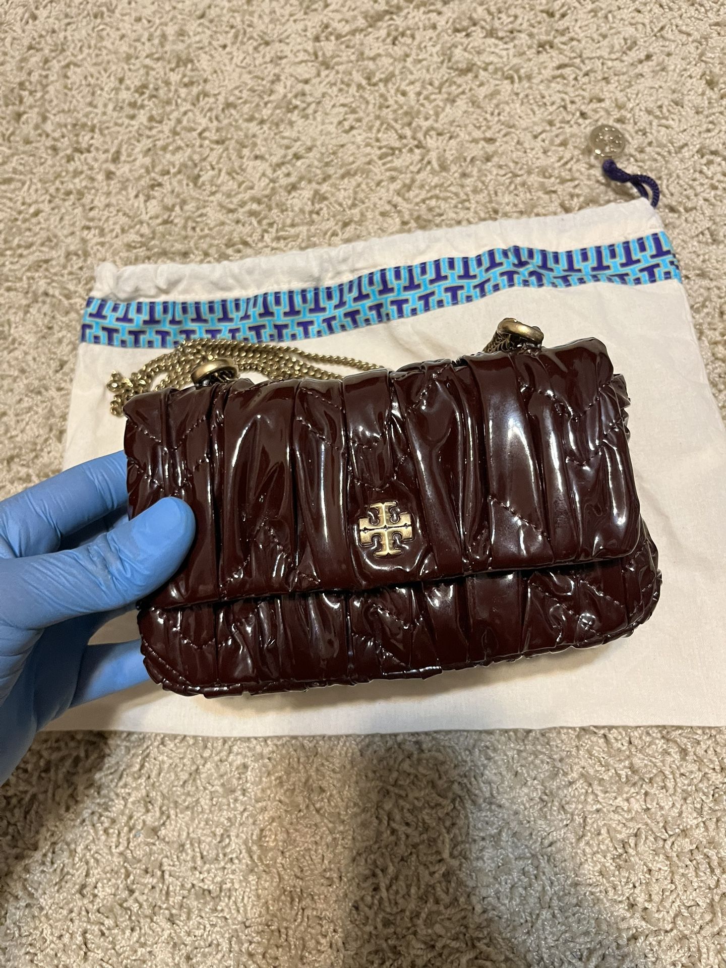 TORY BURCH Small Kira Patent Ruched Convertible Shoulder Bag In Albarossa