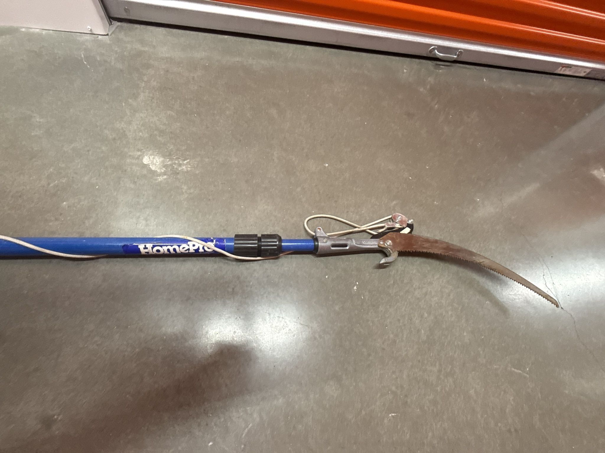 10’ ft + Manual tree pruner with long telescope pole and curved saw blade. • Long pole for overhead branches • Curved pruning saw for limbs • Rope-and-pulley style pruner head (loppers + saw) Good for trimming branches and yard maintenance. Used with normal wear and some surface rust on blade. No power required. Pickup only. Priced to sell. Keywords: tree pruner, pole saw, branch cutter, yard tools