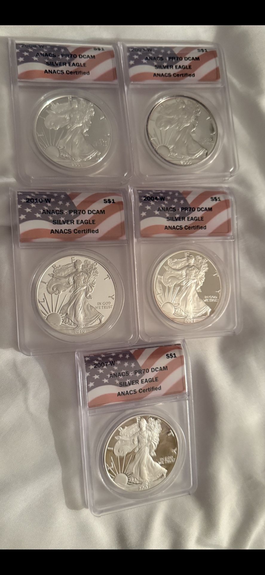 Silver eagles PR70 D CAM $170 each Have 5 available
