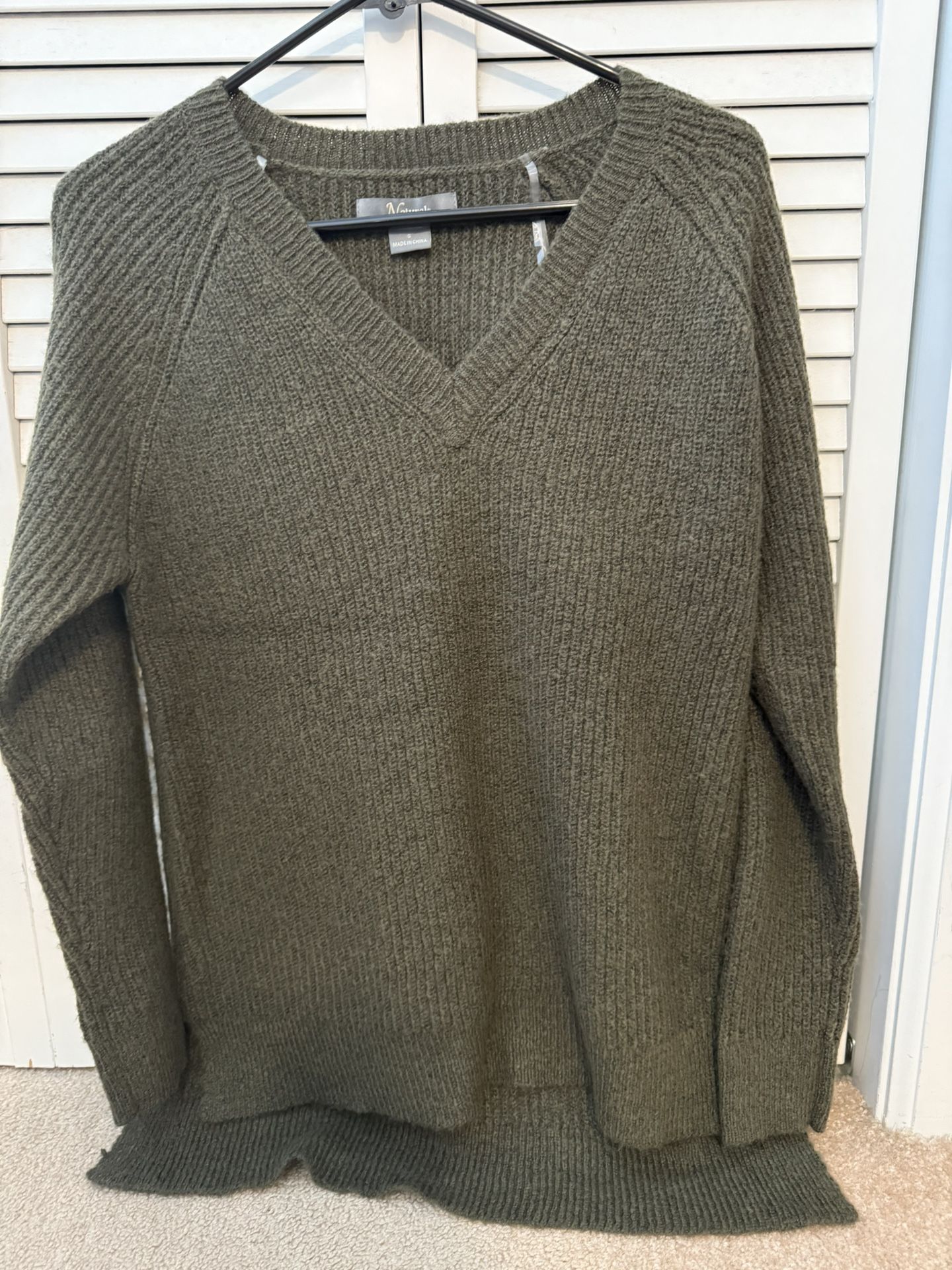 New Womens gray sweater from Cabellas, Natural Brand, Never worn I normally wear medium but this size small runs bigger Really nice sweater. Back is little longer than front