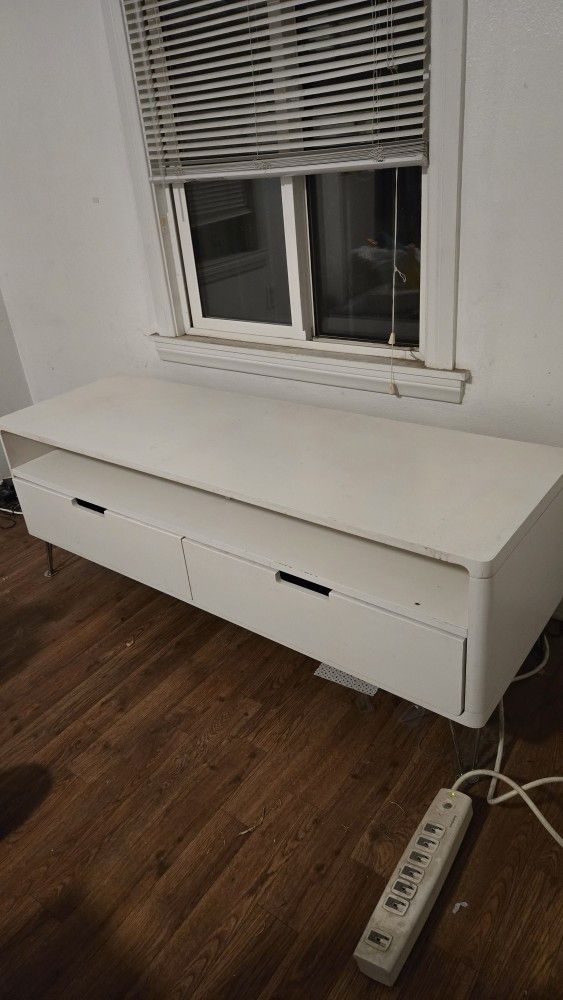 White tv stand, good condition only has scuff marks in the front Heavy and solid Must pick up