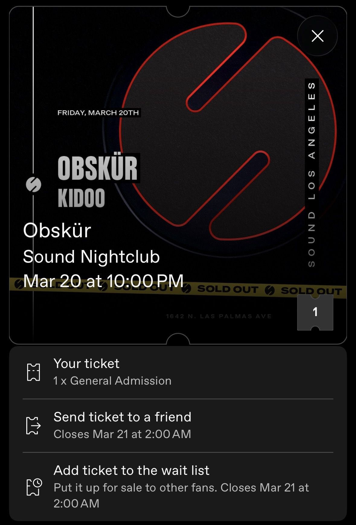 1X Obskür//Kidoo Ticket Sound Nightclub 03/20