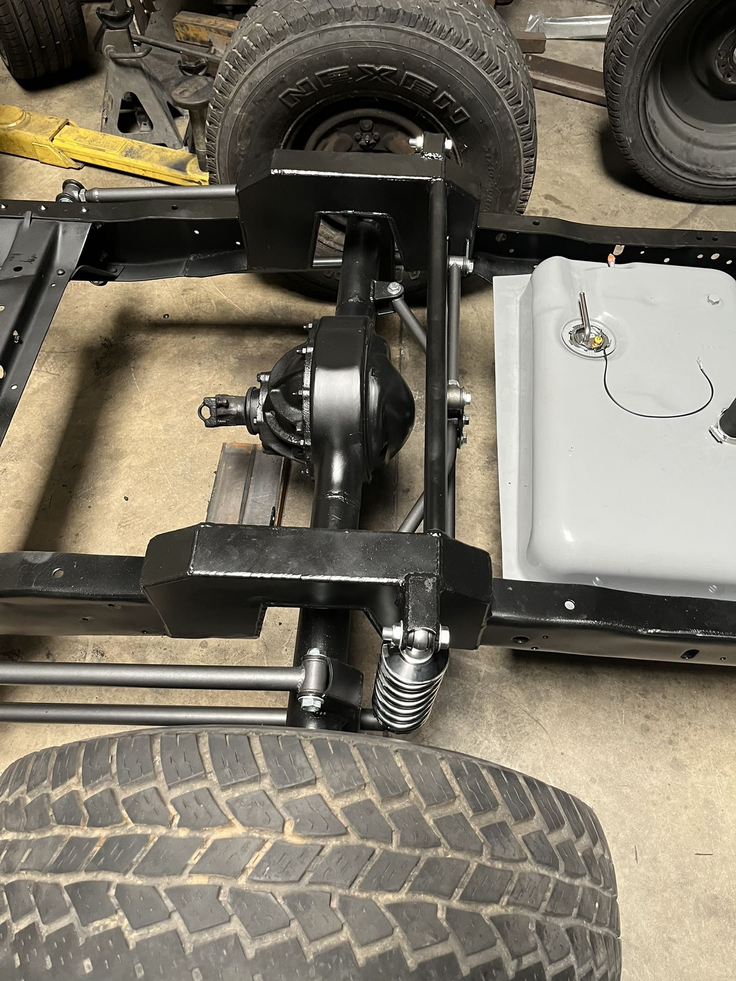 Four bar 4 link with a watts link Under bed notch Qa1 coilovers All hardware Bolt on front mounts Weld on rear mounts Direct fit for 1(contact info removed) f100 Direct fit for 1(contact info removed) f100 We are a local manufacturer who specializes in custom suspension all made in the USA