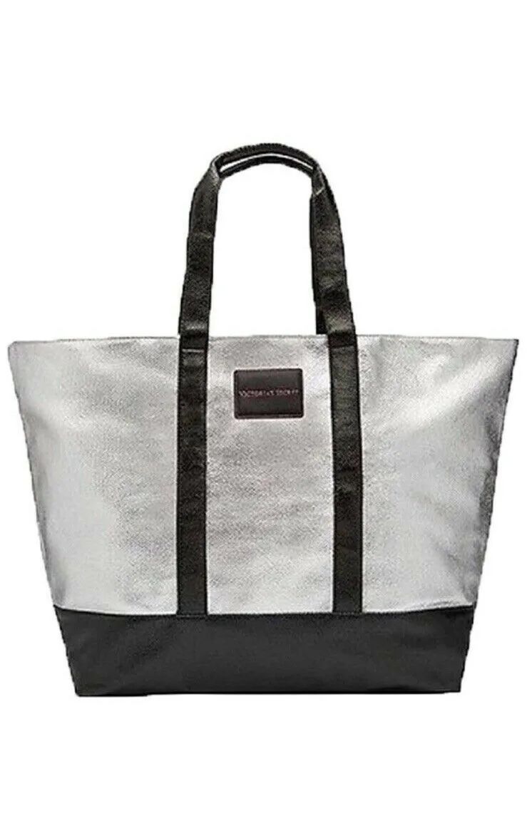 Weekender Victoria's Secret Large Metallic Silver/Black Tote Bag