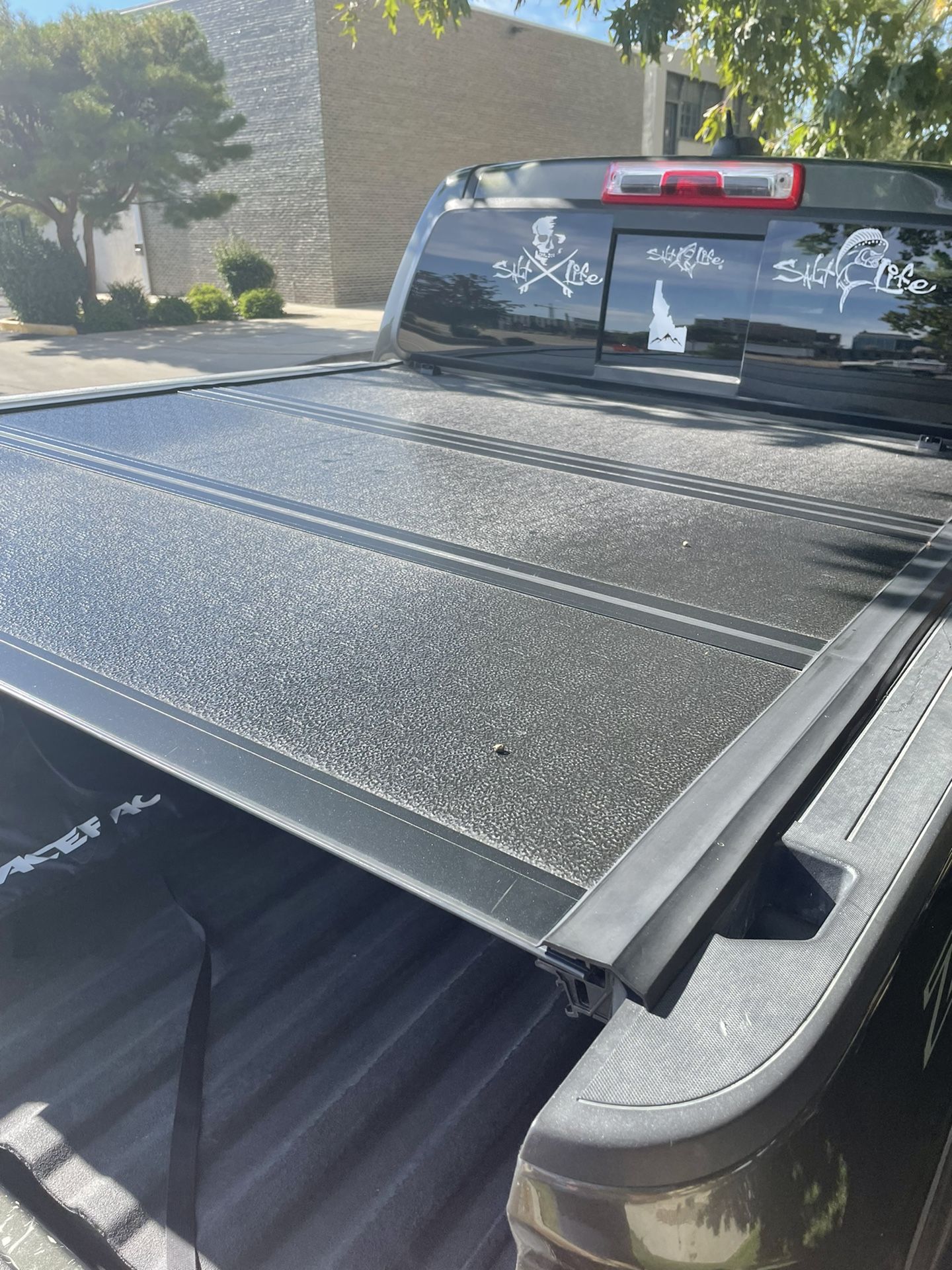 Folding Rough Country bed cover for Chevy Colorado. Secure when tailgate locked.