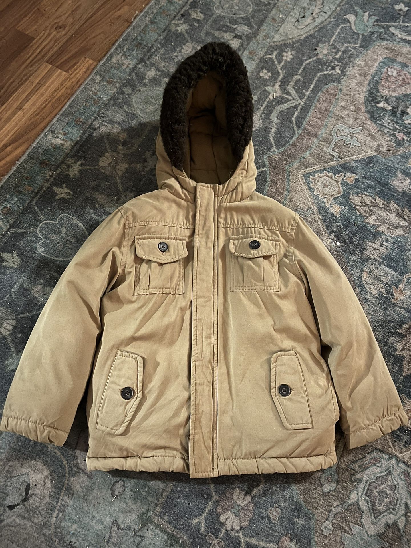 Unisex Gymboree size S 5-6 kids brown heavy winter coat. Button and sipper enclosure. Open pockets and button pockets. Inner cuffs to protect from snow. Good condition. Check marketplace for bundle deals. Will ship upon request.
