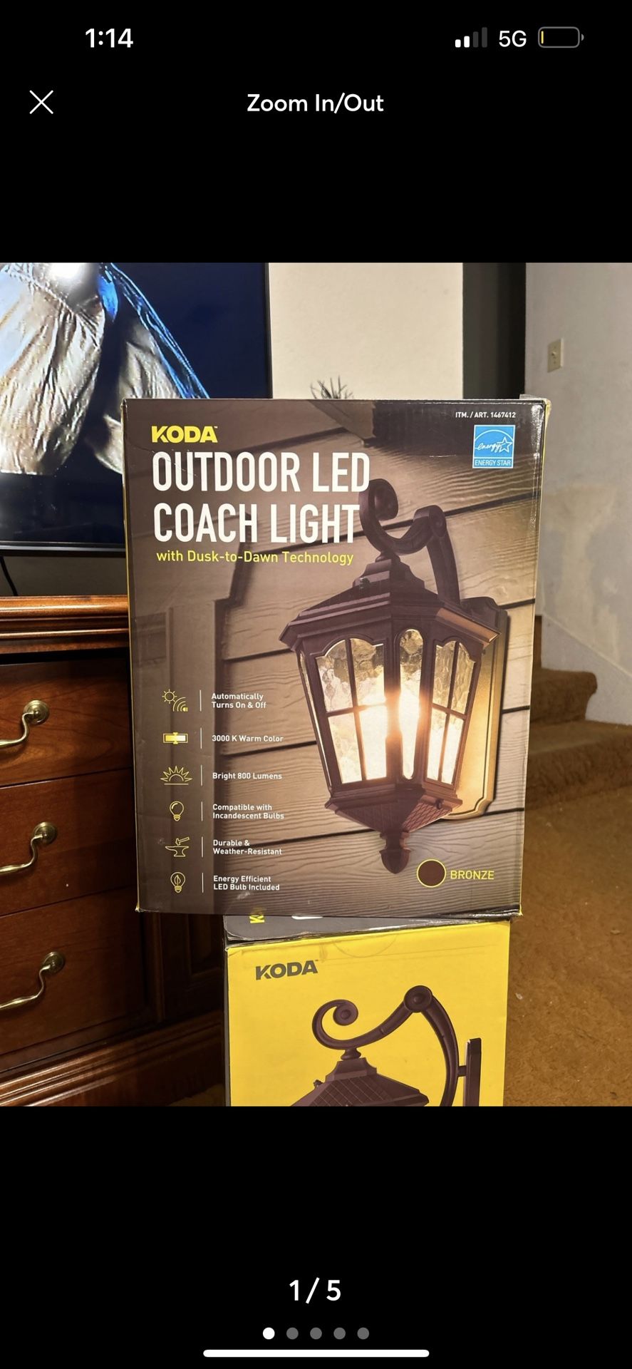KODA Outdoor LED Coach Light Bronze traditional superior style New in Box, Never Opened I’ve 2 available. Listing price is for 1 Retails $100 per. Asking $50 each or $90 for both