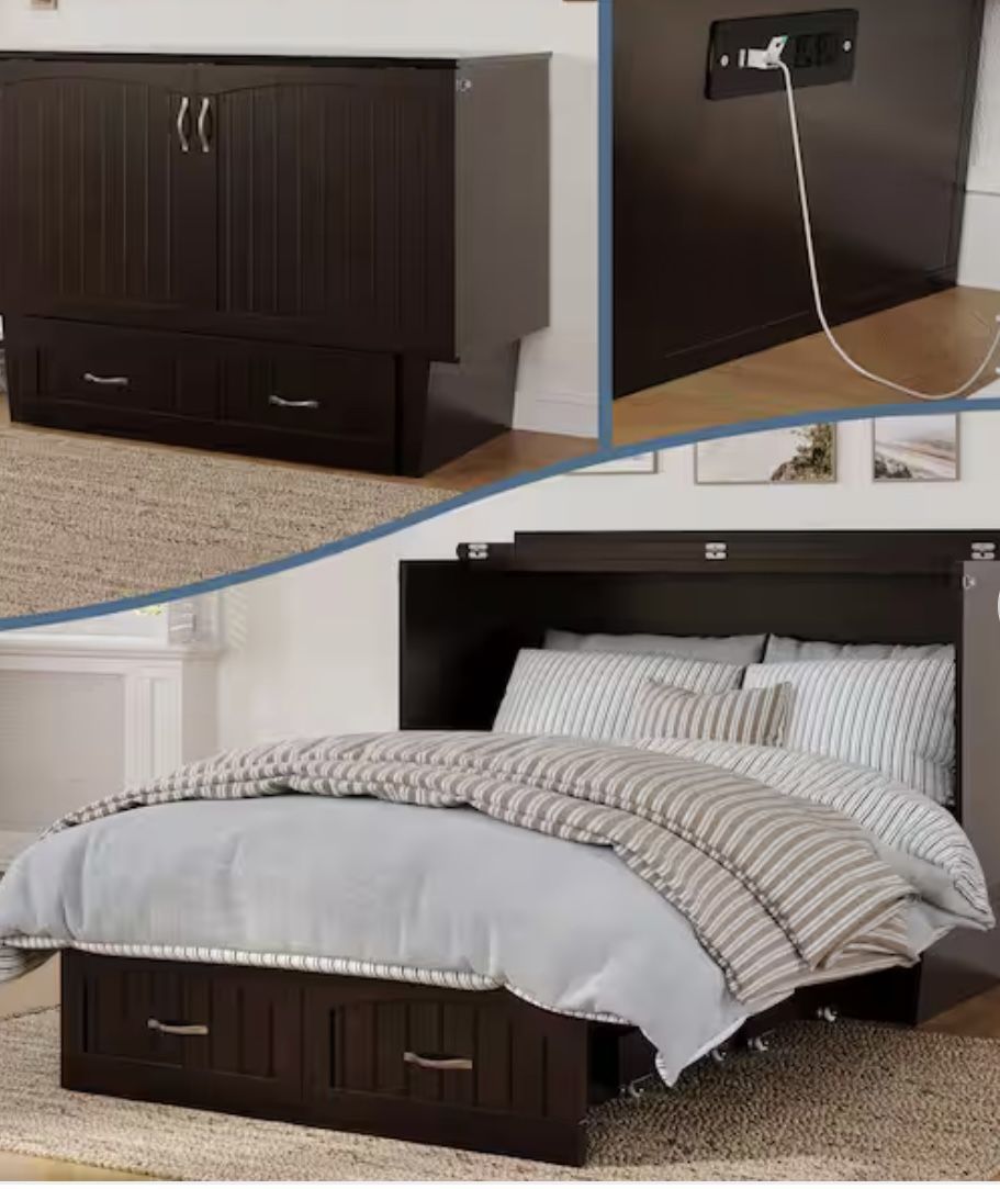 AFI Nantucket Queen Murphy Bed – Espresso – Like New + Mattress + Charger