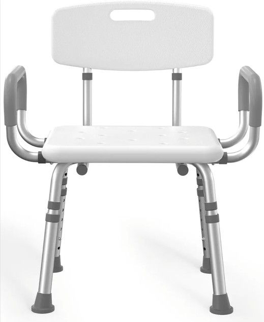 HOMLAND Shower Chair for Inside Shower with Arms and Back, 500 lbs Heavy Duty Shower Seat for Bathtub, Height Adjustable Safety Bath Seat for Elderly, Adults, Handicap and Disabled, White