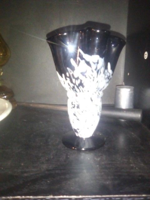 Black and white Moreno glass vintage petite vase. Size is approximately 5 1/2 x 3 in. No cracks or breaks. Pick up at 35th avenue and Dunlap