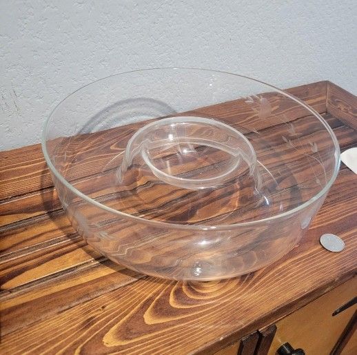 Princess House Chip And Dip Bowl Clear Crystal Handblown Heritage Pattern #401